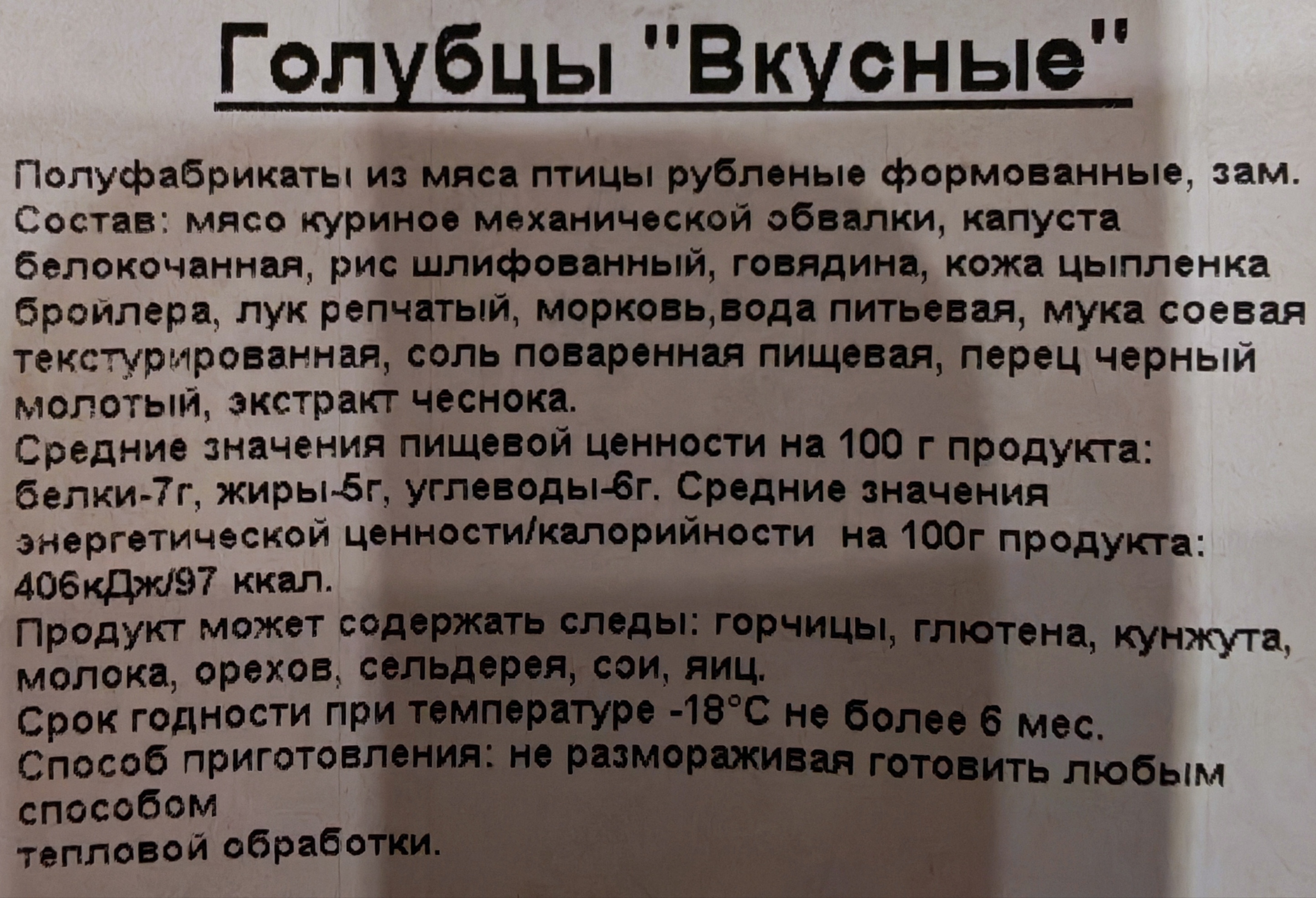 Голубцы Вкусные, прим вес 1кг, ИП Сидоренко А.А.