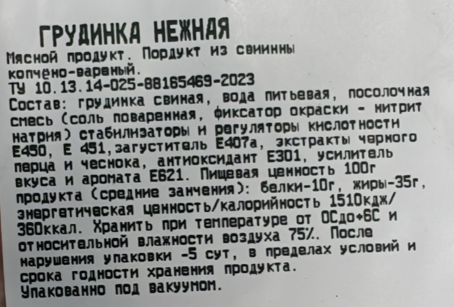 Грудинка "НЕЖНАЯ" в/к, Бычков, вес уп. прим 300гр, цена за 1кг