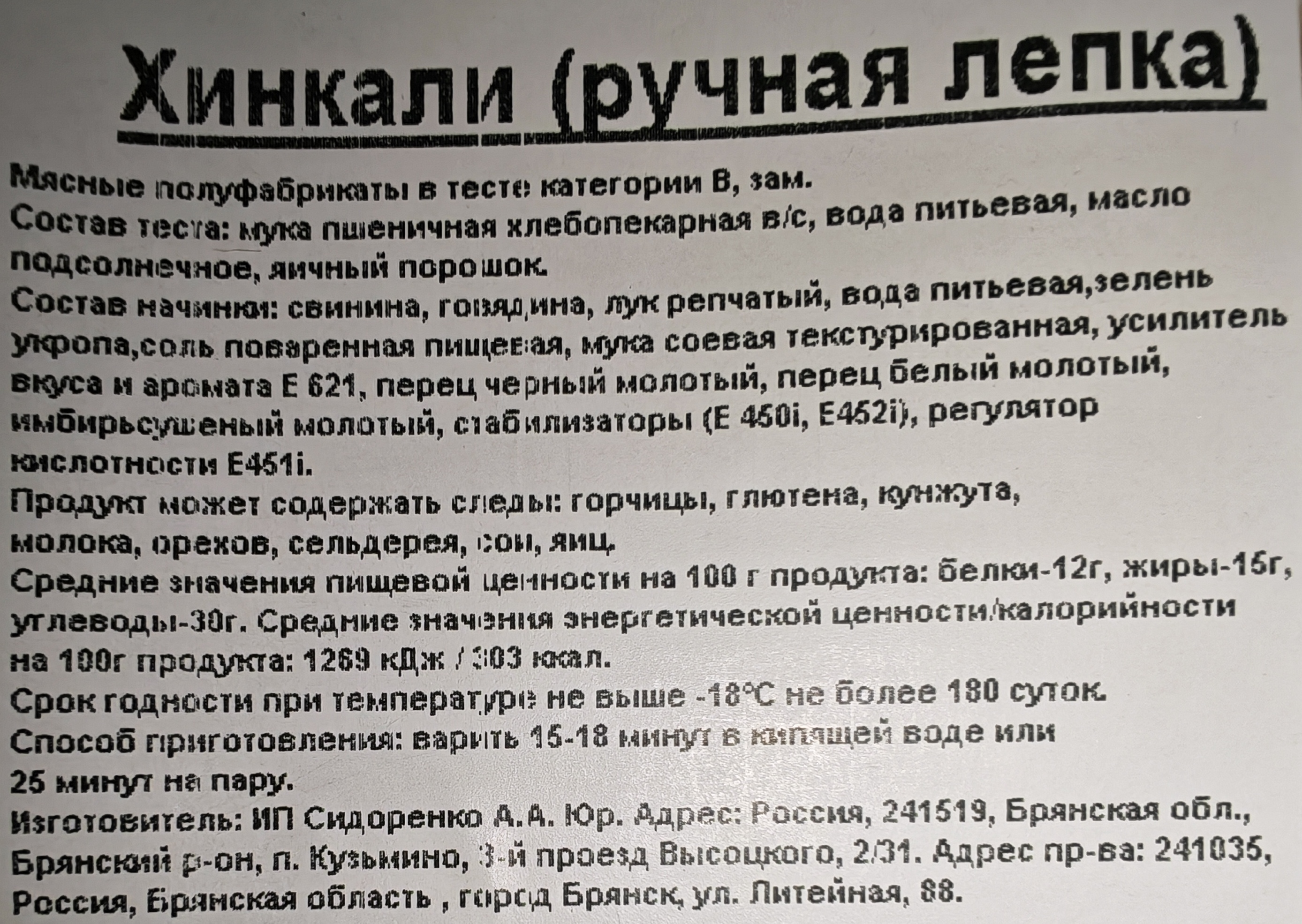 Хинкали ФАС, 0,5кг ИП Сидоренко А.А.