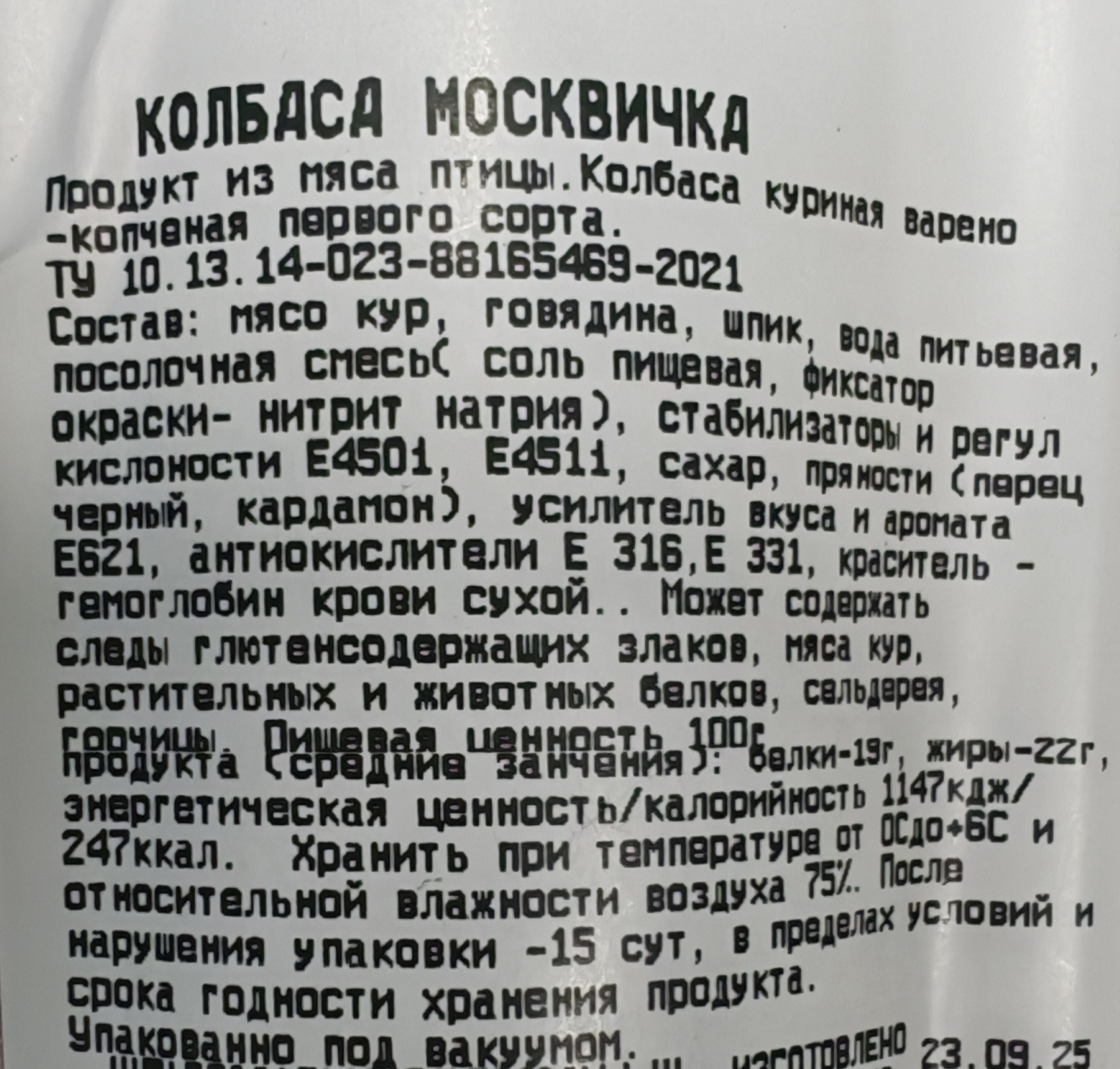 Колбаса МОСКВИЧКА, В/К, 0,3кг, Бычков