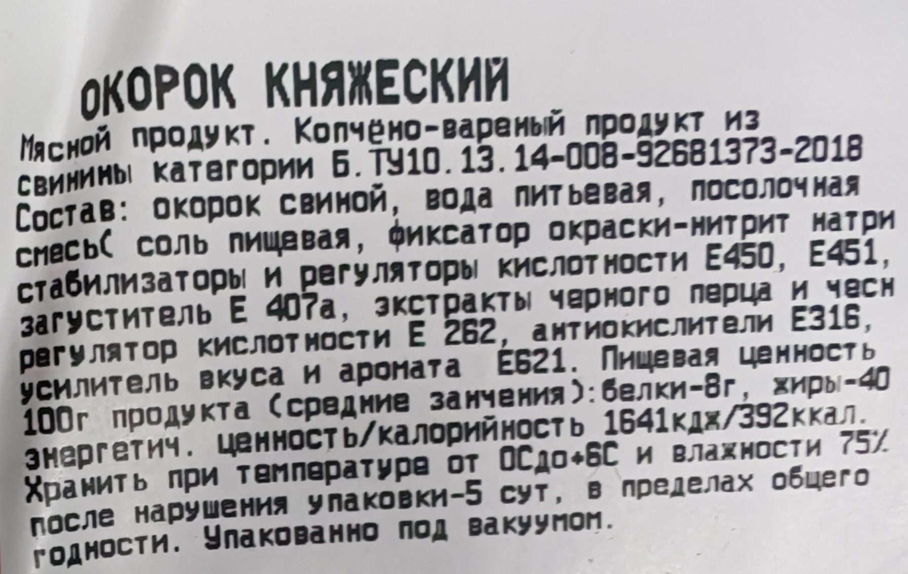 Окорок КНЯЖЕСКИЙ в/к, Юычков, прим вес 0,7кг, цена за 1кг
