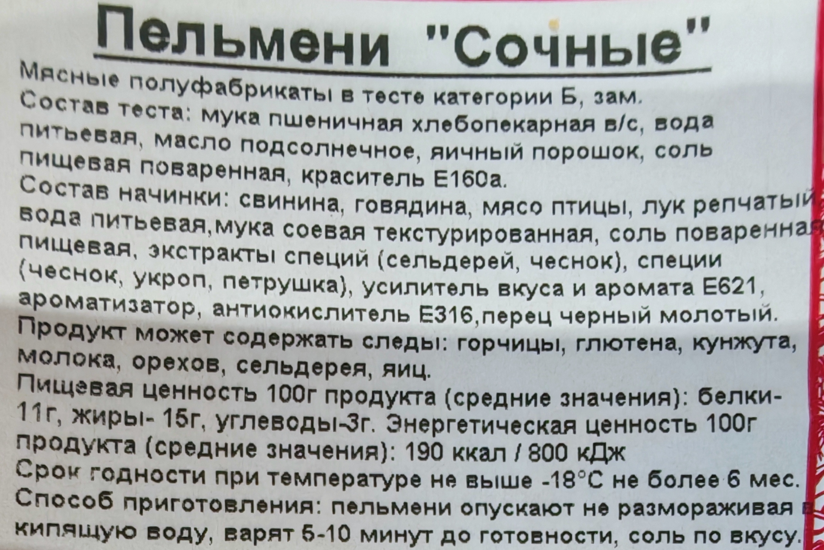 Пельмени Сочные, прим вес 1кг, ИП Сидоренко А.А.