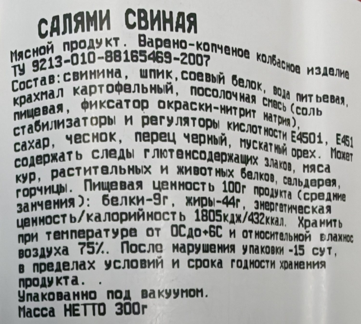 Салями СВИНАЯ в/к, 0,3кг, Бычков