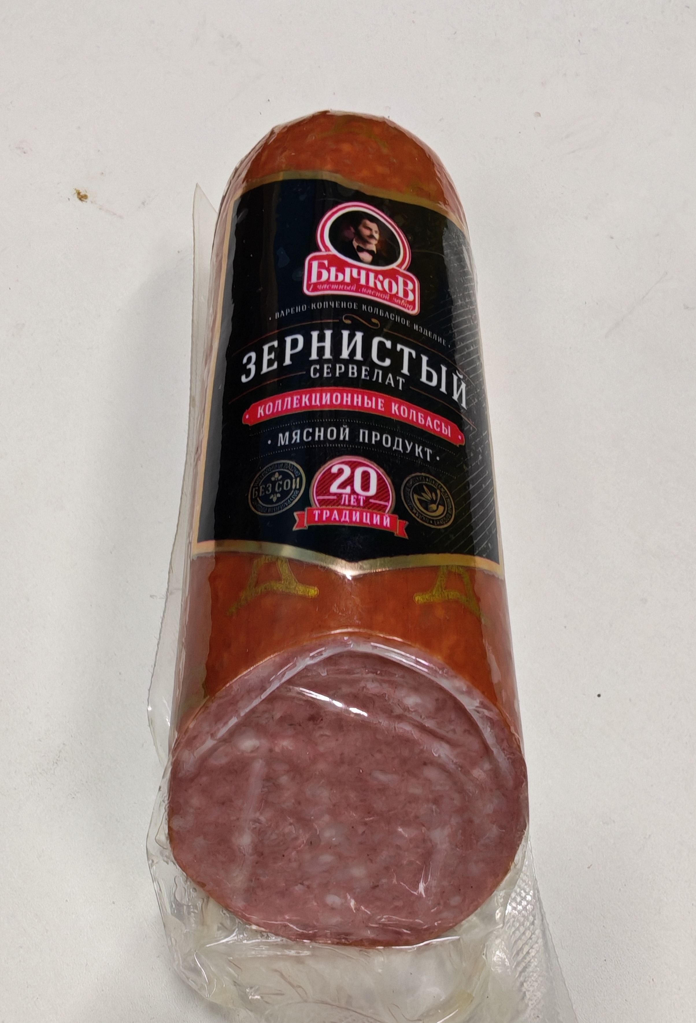 Сервелат ЗЕРНИСТЫЙ в/к, 0,3кг, Бычков