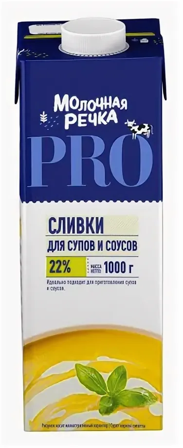 Сливки питьевые стерил. м.д.ж. 22%, ТМ "Молочная речка" 1кг