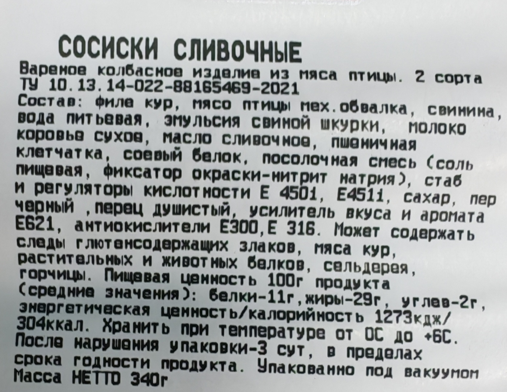 Сосиски СЛИВОЧНЫЕ, В/У, БЫЧКОВ. Цена 1шт - 340гр
